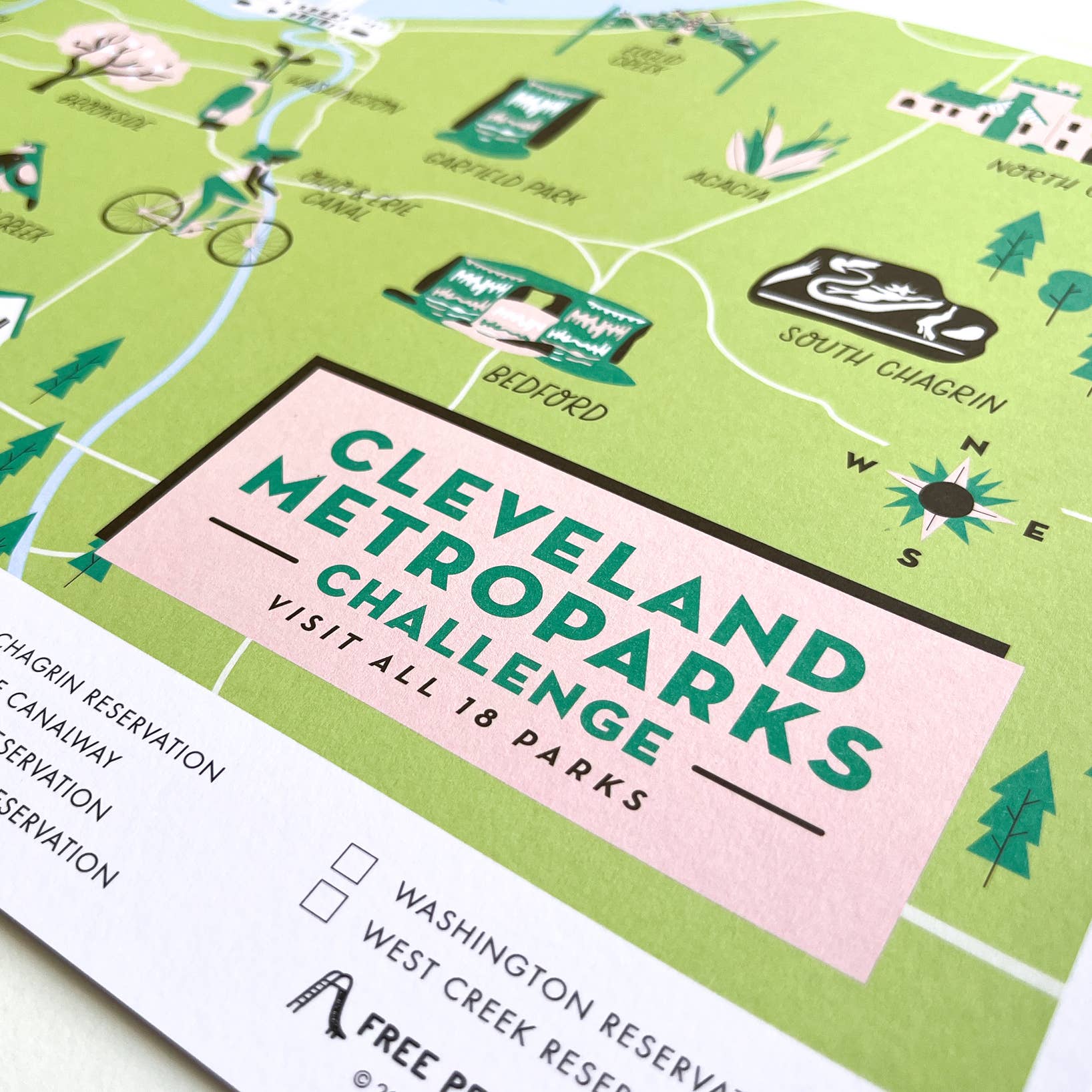 Clevelanders are so lucky to have the award-winning Metroparks in our backyard, but many of us are guilty of sticking to the parks that are closest to home. We created this map to encourage you to get out and explore all 18 Metroparks reservations. Bonus points if you leave your phone on airplane mode. 11” x 17” 12 pt. uncoated paper stock Designed by Katie Daugherty