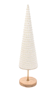 THIS DÉCOR TREE FEATURES A SOLID WOOD BASE AND HAND PLACED BEADED DETAILS AND PEARLS.