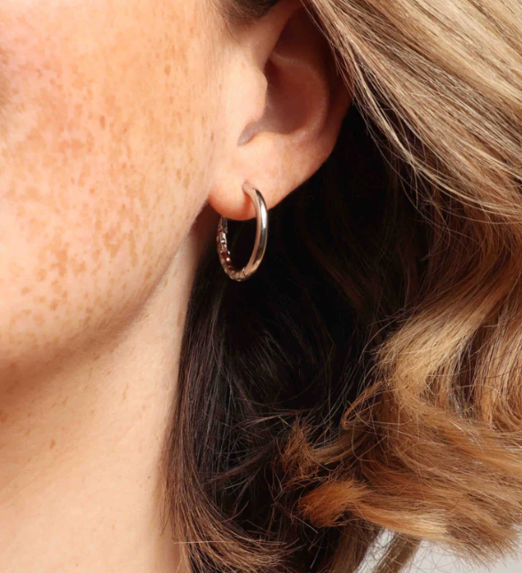 Our newest huggie that is reversible with an invisible click hoop closure, and available in 2 sizes (15mm + 20mm). Textured personality on one side and sleek and silky smooth on the other.