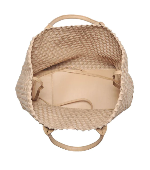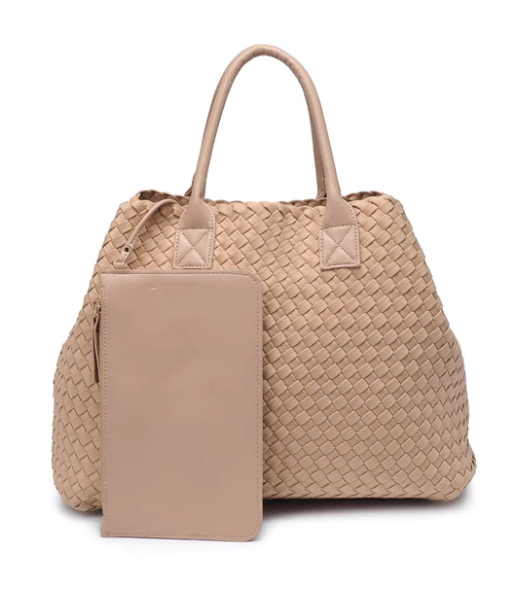 Crafted with woven material and a stylish vegan leather handle, it’s sure to draw attention wherever you go. The tie closure adds flair and keeps your essentials totally secure throughout your day. Plus, you can stay organized with the attached vegan leather pouch complete with a zipper closure for extra security. With Ithaca, you can always look chic and be prepared for just about anything.